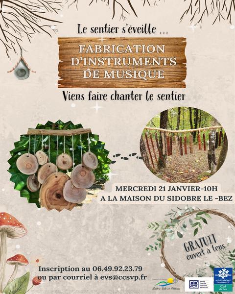 Atelier nature : Le sentier s’éveille … Fabrication d’instruments de musique. Viens faire chanter le sentier.