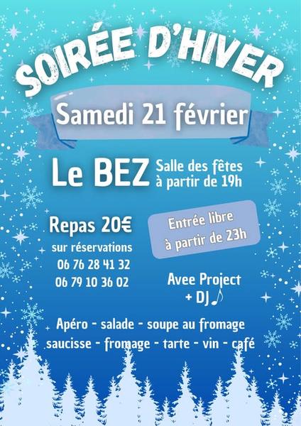 Sors de la déprime hivernale et viens t’ambiancer et te régaler au BEZ pour la SOIRÉE D’HIVER le SAMEDI 21 FÉVRIER !!