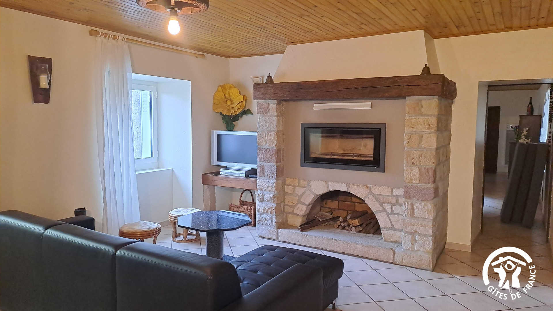 – Salon avec TV, cheminée fonctionnelle et bar d’appoint, idéal pour les amateurs d’apéro !