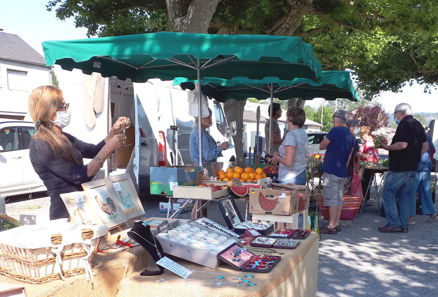 Forains, producteurs et artisans s’installent pour la matinée sur la place du village.