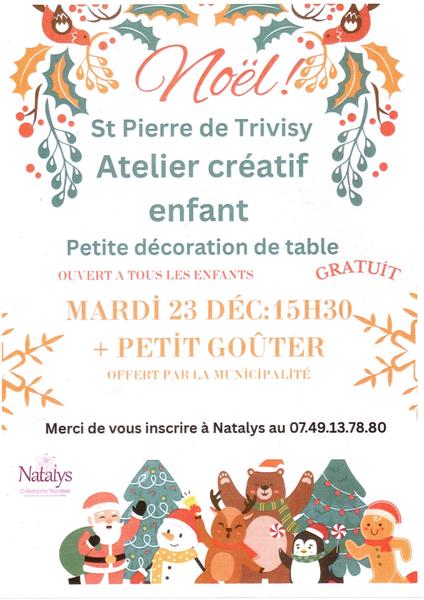 Rejoignez nous pour un atelier créatif de Noël ! Les enfants pourront fabriquer de charmantes décorations de table pour les fêtes. Laissez libre cours à leur imagination !