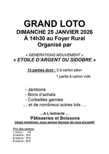 Rendez-vous pour notre loto ! Venez nombreux, nous serons heureux de vous accueillir !