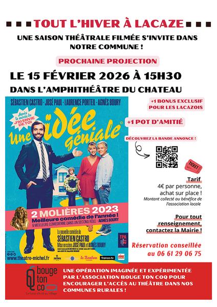 Une saison théâtrale filmée s’invite dans notre commune ! « Une idée géniale », une comédie de Sébastien Castro mise en scène par José Paul et Agnès Boury.