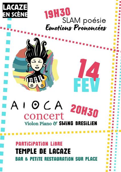 Spectacle de Slam/ poésie à 19h30 et concert d’Aoica à 20h30