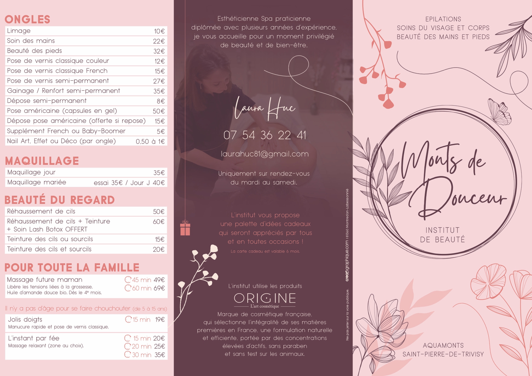 Esthéticienne/Spa praticienne diplômée et fortes de plusieurs années d’expérience, Laura vous accueille pour un moment privilégié de beauté et de bien-être.