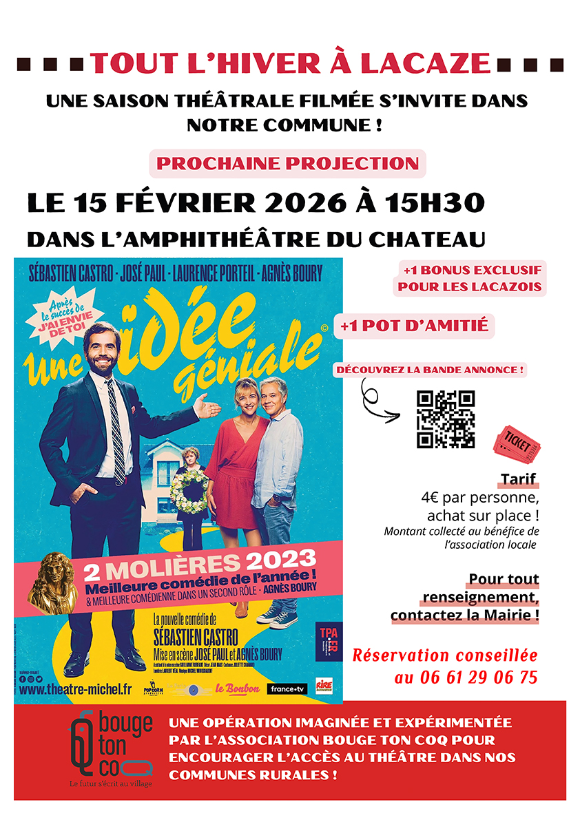 « Clap Théâtre » est une opération imaginée et expérimenté par l’association « Bouge ton coq » pour encouragée l’accès au théâtre dans nos communes rurales !