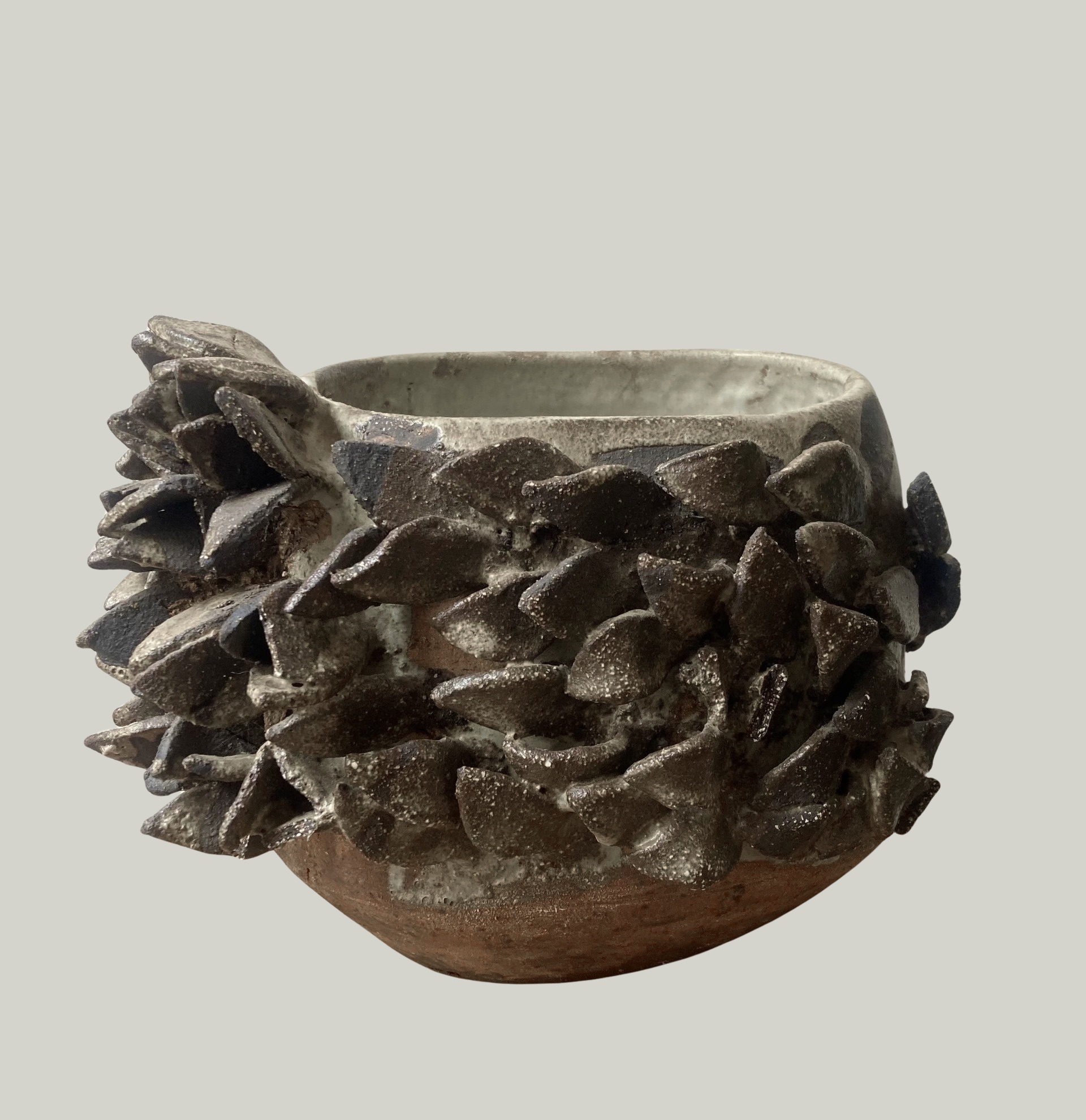 Je travaille le grès et la porcelaine à la plaque, au colombin, dans la masse, il m’arrive de tourner. Une idée qui passe, une situation que j’ai aimée ou une envie soudaine, mes pièces ne suivent pas une trajectoire particulière et peuvent être très différentes les unes des autres en fonction des personnes, contextes ou lieux qui m’entourent. Chaque objet raconte, à sa manière, une intention, une sensation, une histoire. Improvisation ou décision, avec toujours l’envie d’expérimenter le geste, les matériaux ou encore les cuissons.