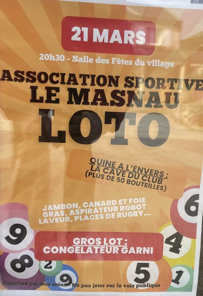Nous vous attendons nombreux au loto de l’association sportive du Masnau Massuguiès !