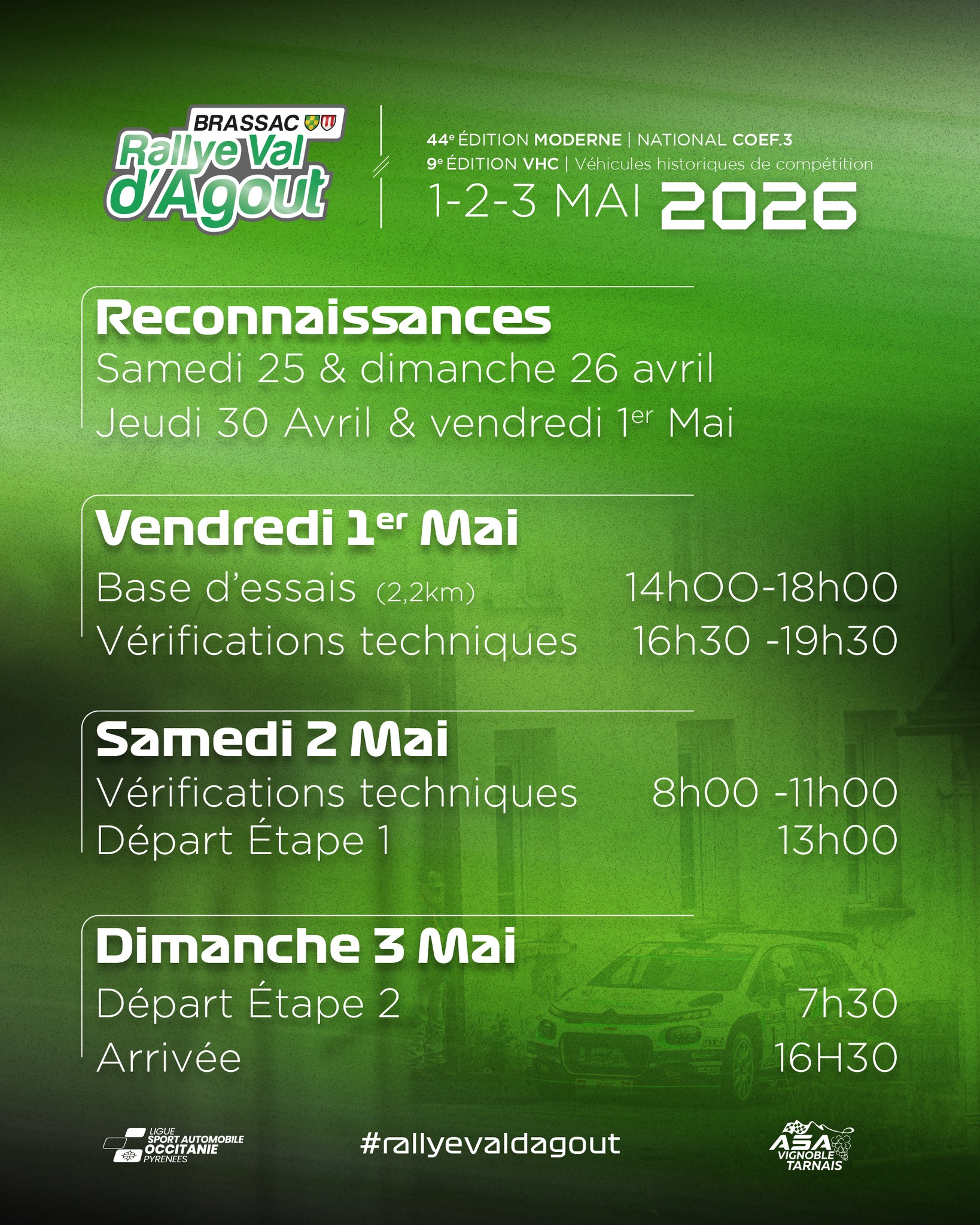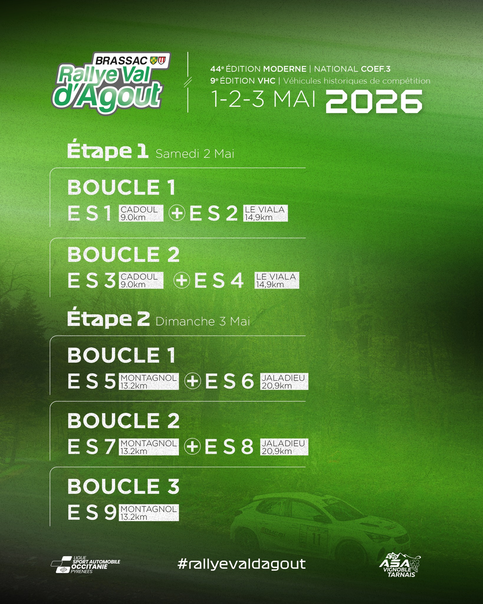 La 44ème édition du Rallye Val d’Agout aura lieu les 01, 02 et 03 mai 2026 !