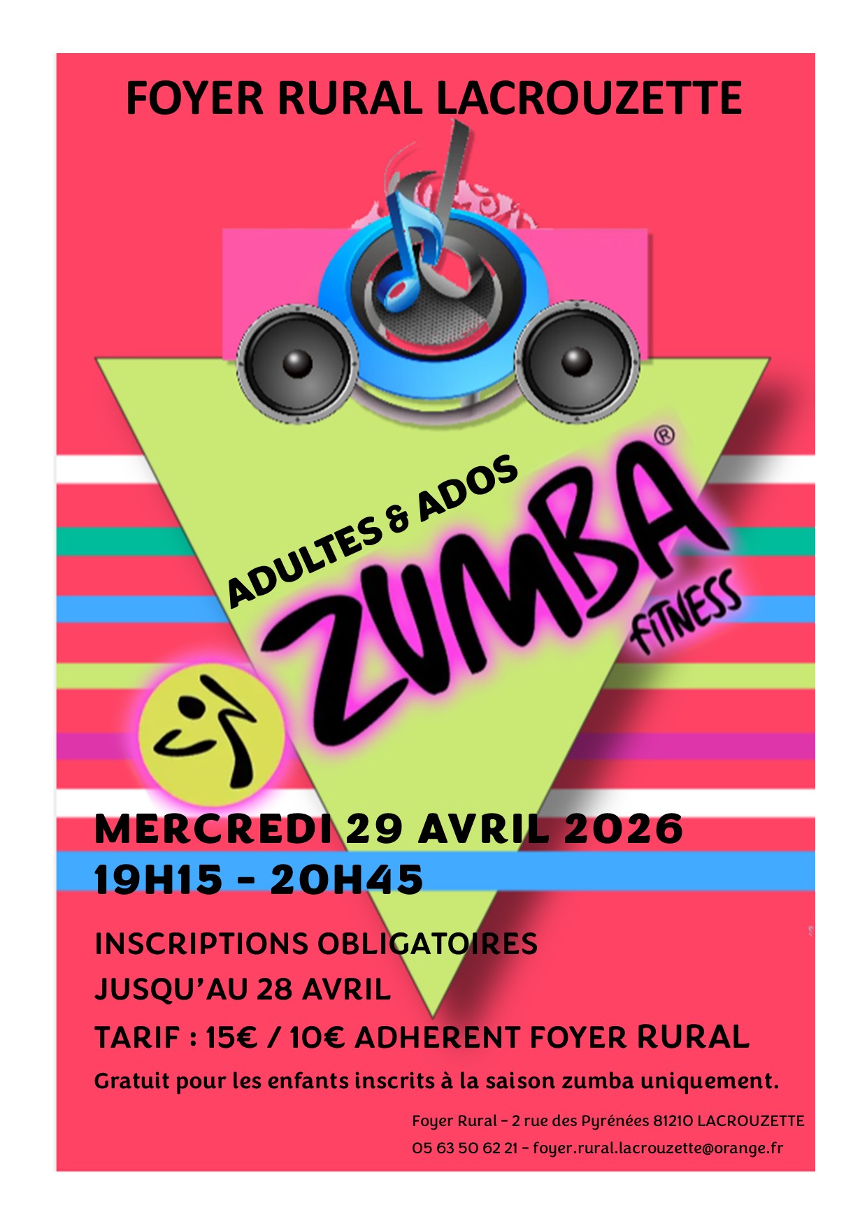 Adulte : de 10 à 15 € (10 € pour les adhérents au foyer rural Gratuit uniquement pour les enfants inscrits à la saison Zumba.).