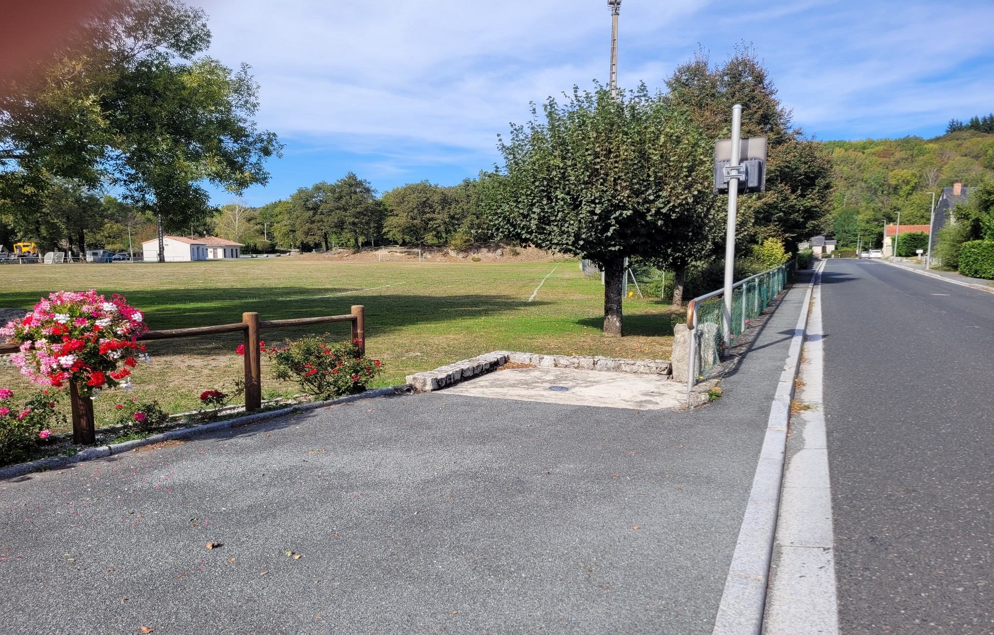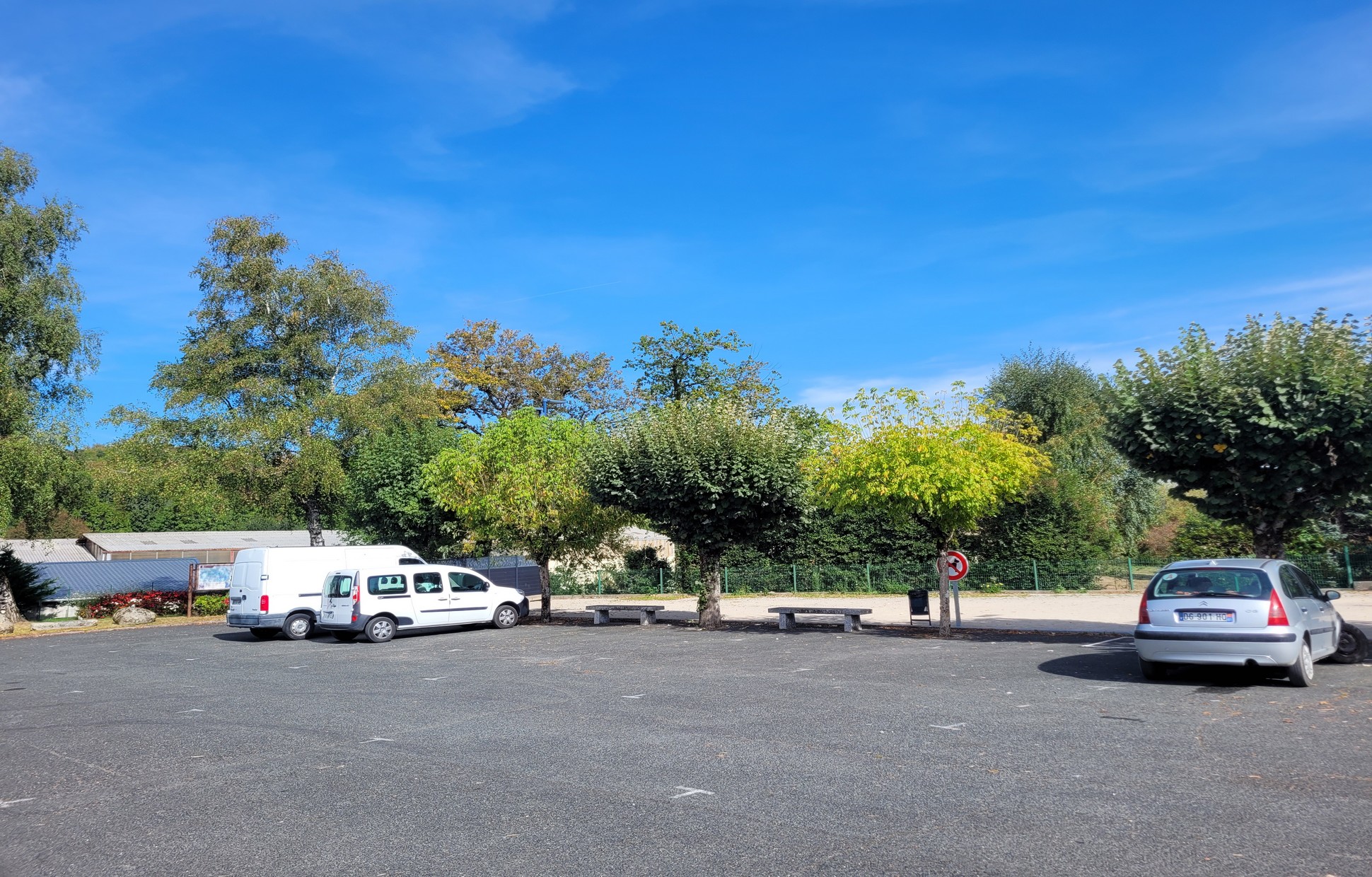 Parking, eau, WC publics, poubelles.