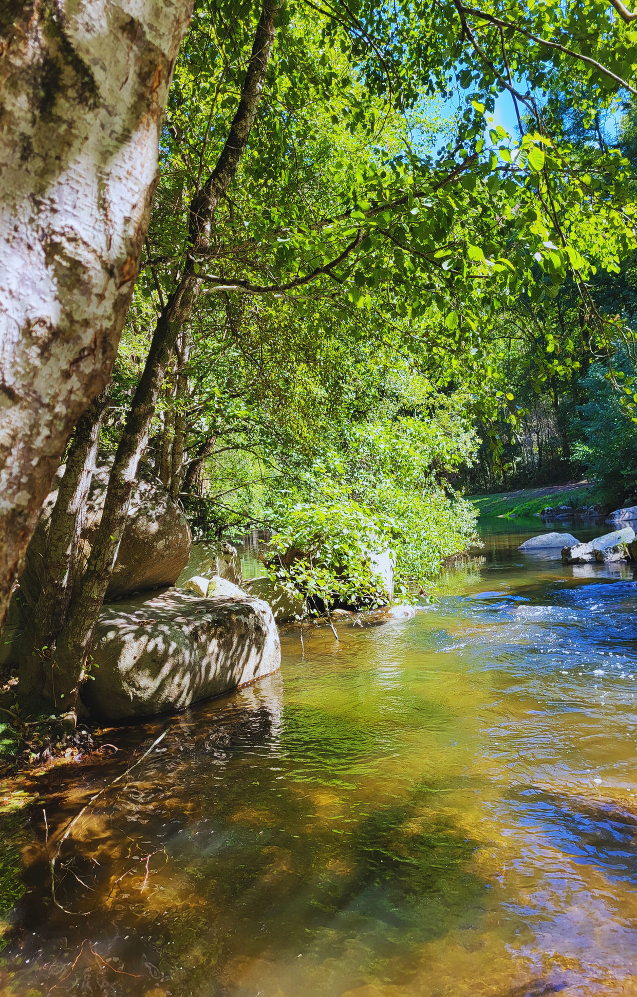 Vacances en camping dans une atmosphère décontractée. Des emplacements spacieux en pleine nature, au calme, au bord d’une rivière pour nager ou pêcher.
