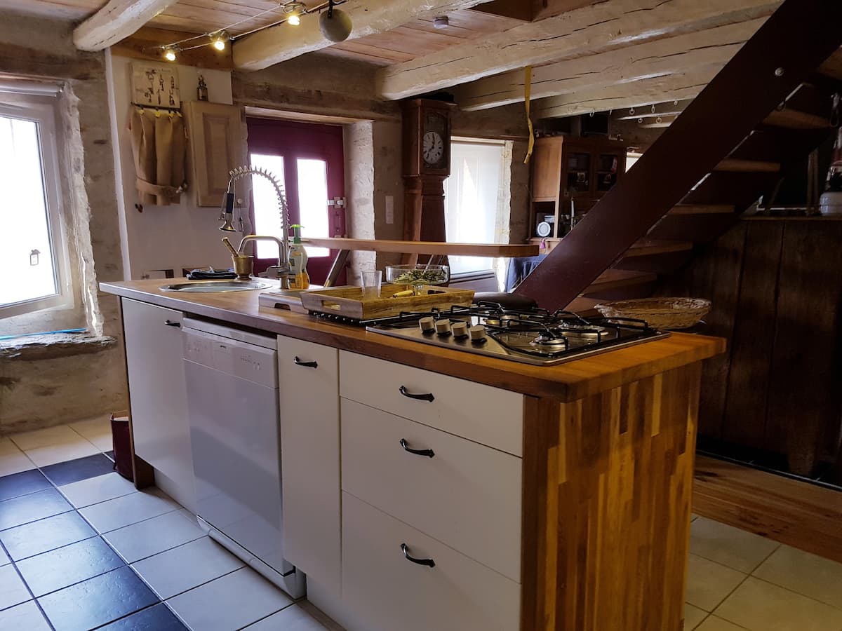 Aspirateur Câble / Satellite Matériel Bébé Lit 140 cm Cuisine Cheminée / Poêle Lits superposés Bois à disposition Double vitrage Douche Draps compris Four Lave linge privatif Lave vaisselle Prise de télévision Réfrigérateur Sèche cheveux Sèche serviettes Télévision Toilettes séparées 2 salles de bain (privées) Canapé Canapé convertible Cuisine américaine Hotte aspirante Lecteur DVD Micro-ondes Séjour / Salle à manger Cellier Lit 90 cm Matériel de repassage Lit bébé Chaise bébé Chambre familiale Cafetière Bouilloire Machine à café Couette Grille-pain