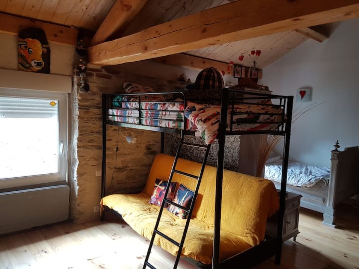 Spacieuse et confortable, un grand séjour salle à manger avec poêle cheminée (bois fourni), un grand salon, une cuisine américaine, un cellier,2 salles de bain et 2 WC, deux chambres avec lits en 140 et un espace dortoir avec 2 lits en 130, 1 convertible 140, 1 lit mezzanine 90, un lit appoint 120, 1 lit enfant (+1 lit bébé parapluie à disposition).