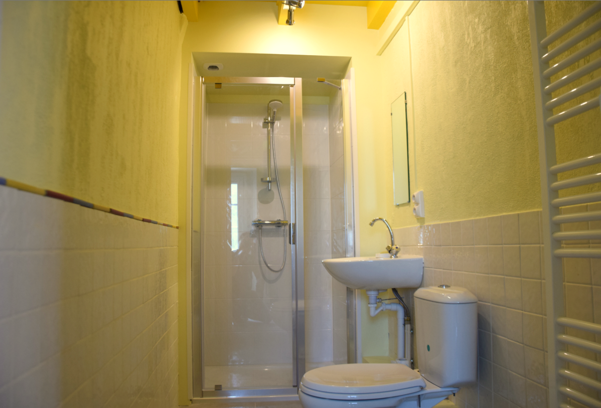 Etage : 3 chambres (3 lits 1 personne), (2 lits 1 personne), (1 lit 2 personnes + 1 lit 1 personne) salle d’eau et WC.