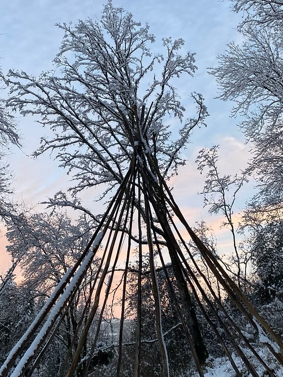 Possibilité de mise à disposition du tipi avec foyer central (9 m de diamètre) et d’une salle de travail de 60 m².