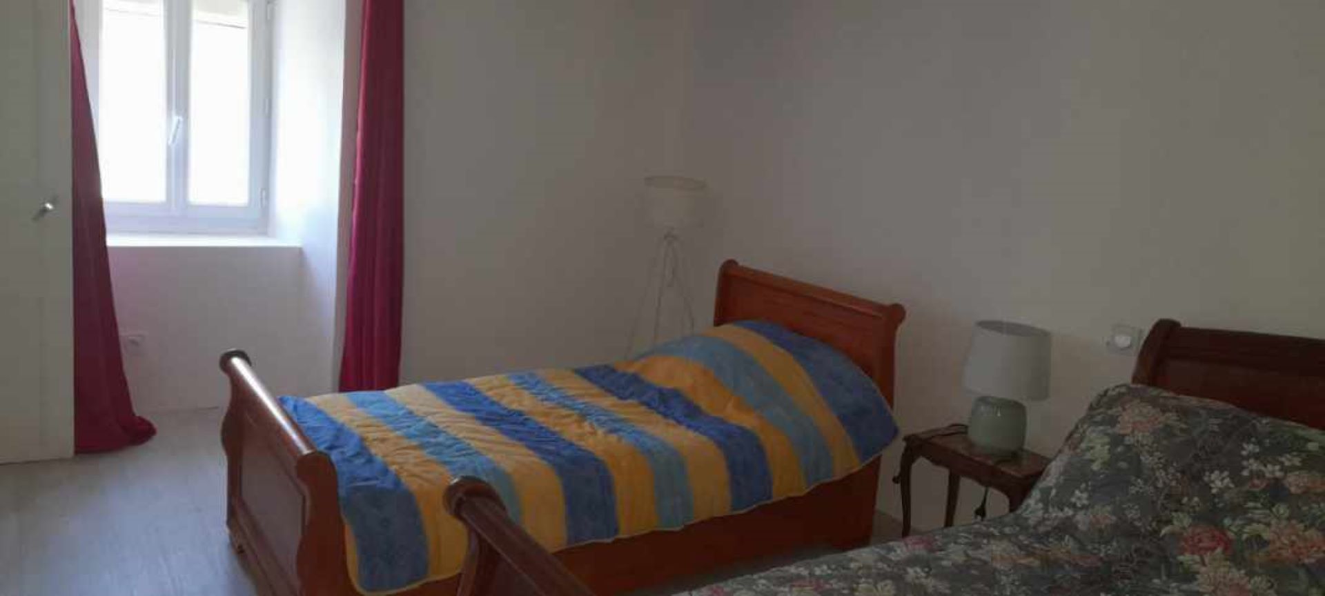 Nous avons choisi de respecter le caractère traditionnel et rustique de cette maison, tout en proposant un très bon confort. Cette maison possède trois chambres. Poutres apparentes dans les chambres.