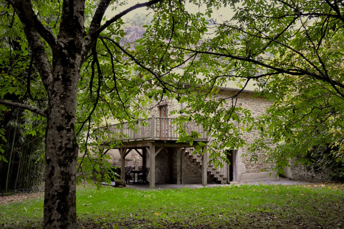 Petit pavillon avec grande prairie arborée bambouseraie et terrasse