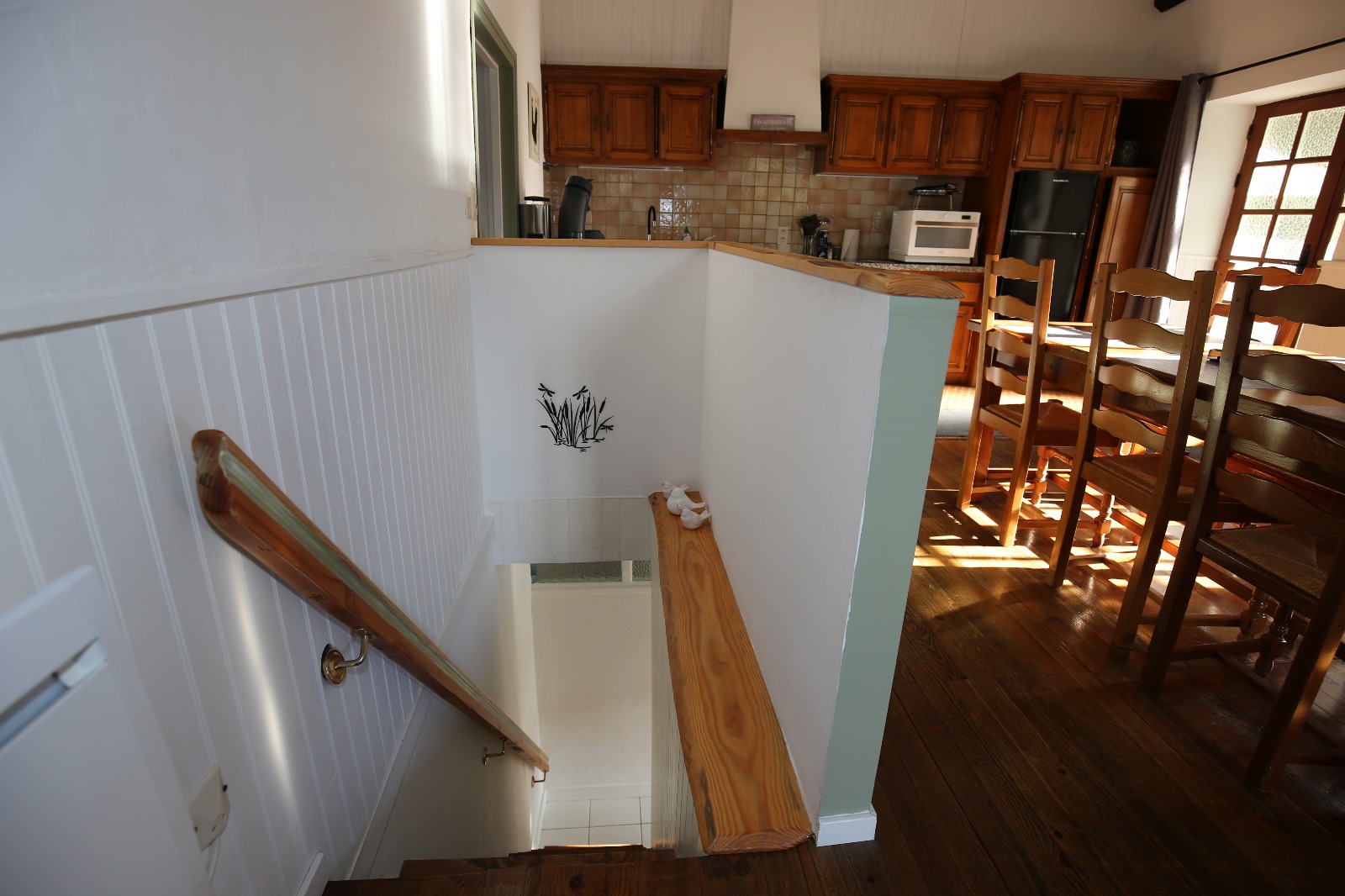 Rez-de-chaussée accessible avec un escalier de meunier pentu à l interieur, ou accessible depuis l’extérieur :