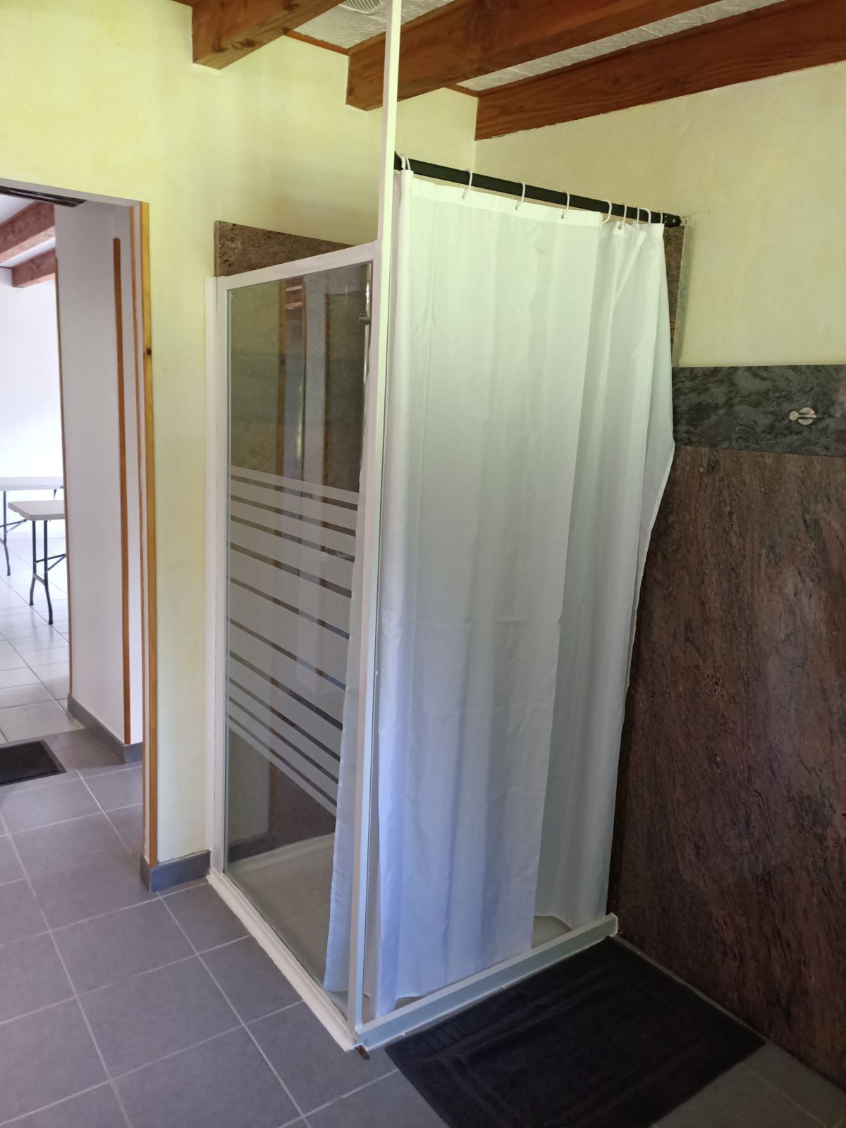 La terrasse, couverte, peut accueillir la capacité des 5 gîtes, soit 24 personnes avec chaises et tables à cet effet. Cuisine, équipements et vaisselle sont également prévus pour recevoir un groupe.