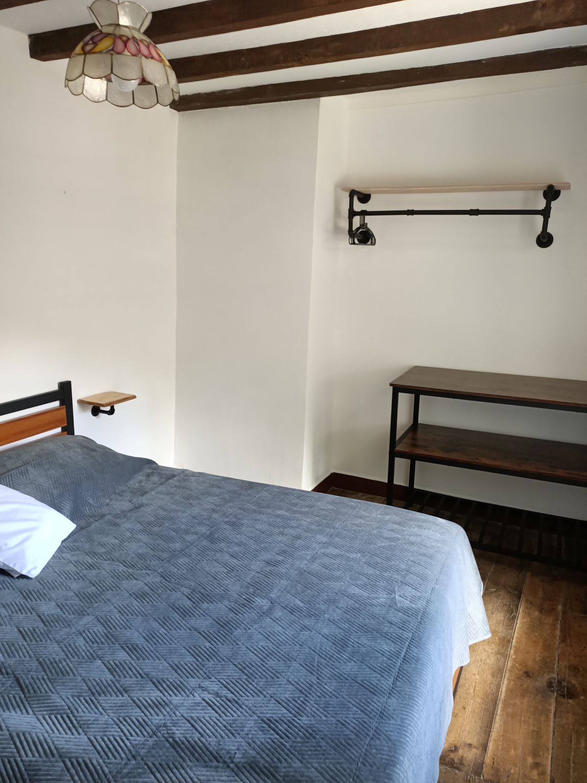 – un coin couchage, aménagé sur le palier, avec un lit en 90x190cm, isolé par un rideau