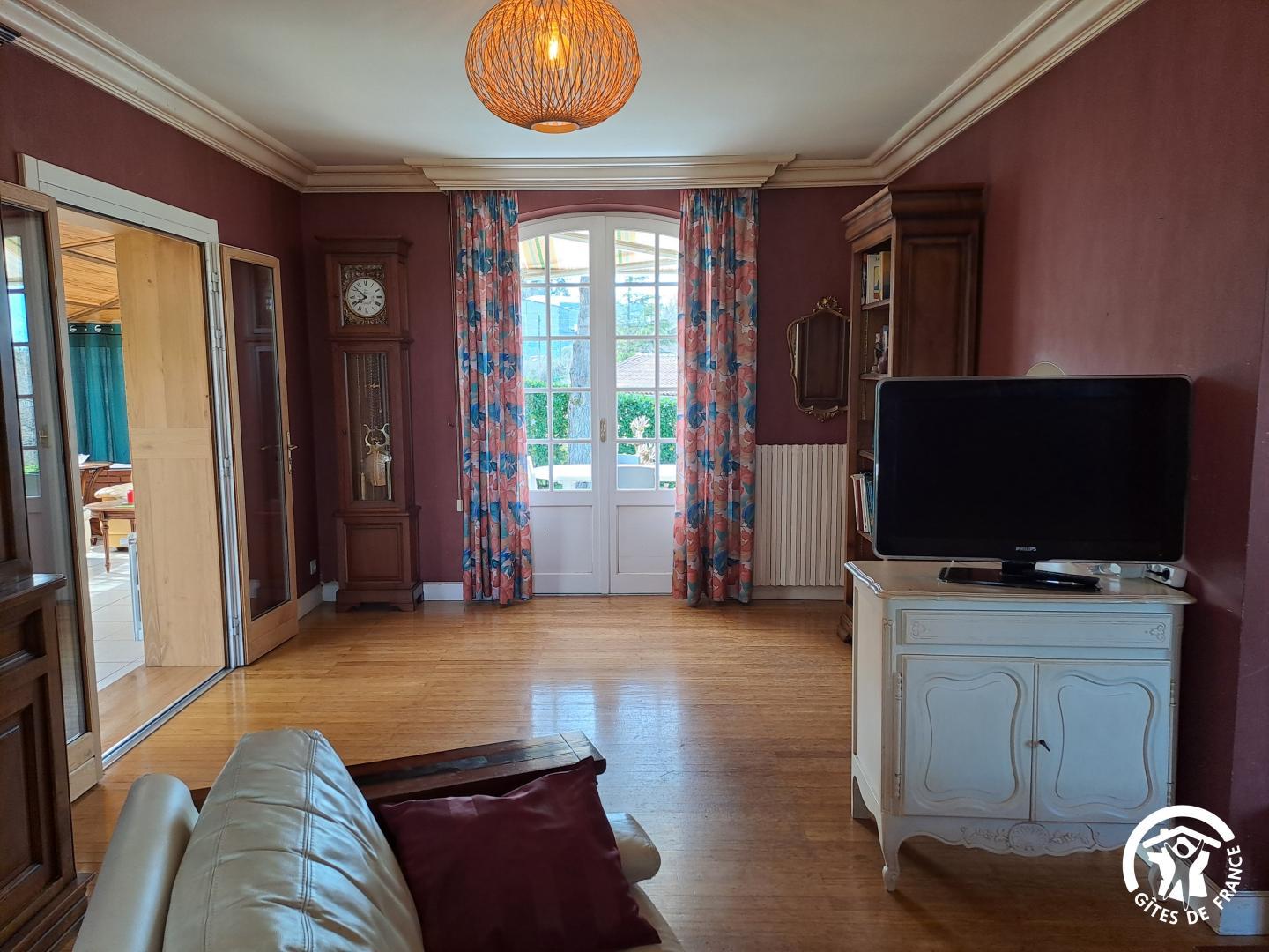 – un salón con rincón para sentarse, chimenea (se proporciona leña para el primer fuego) y televisión