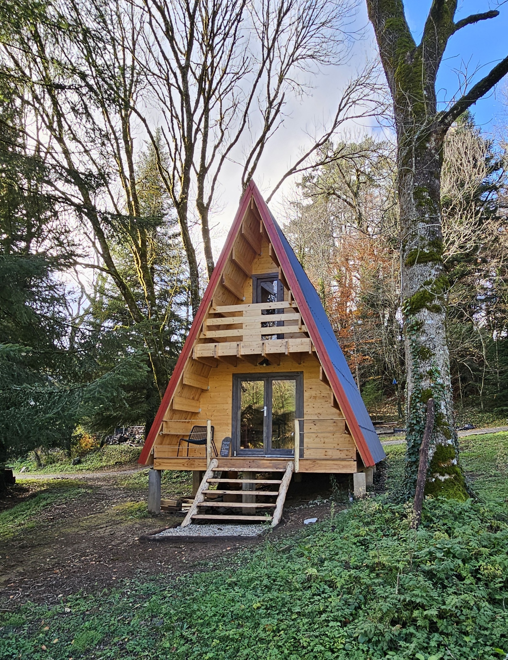 Le chalet est accessible par des marches.