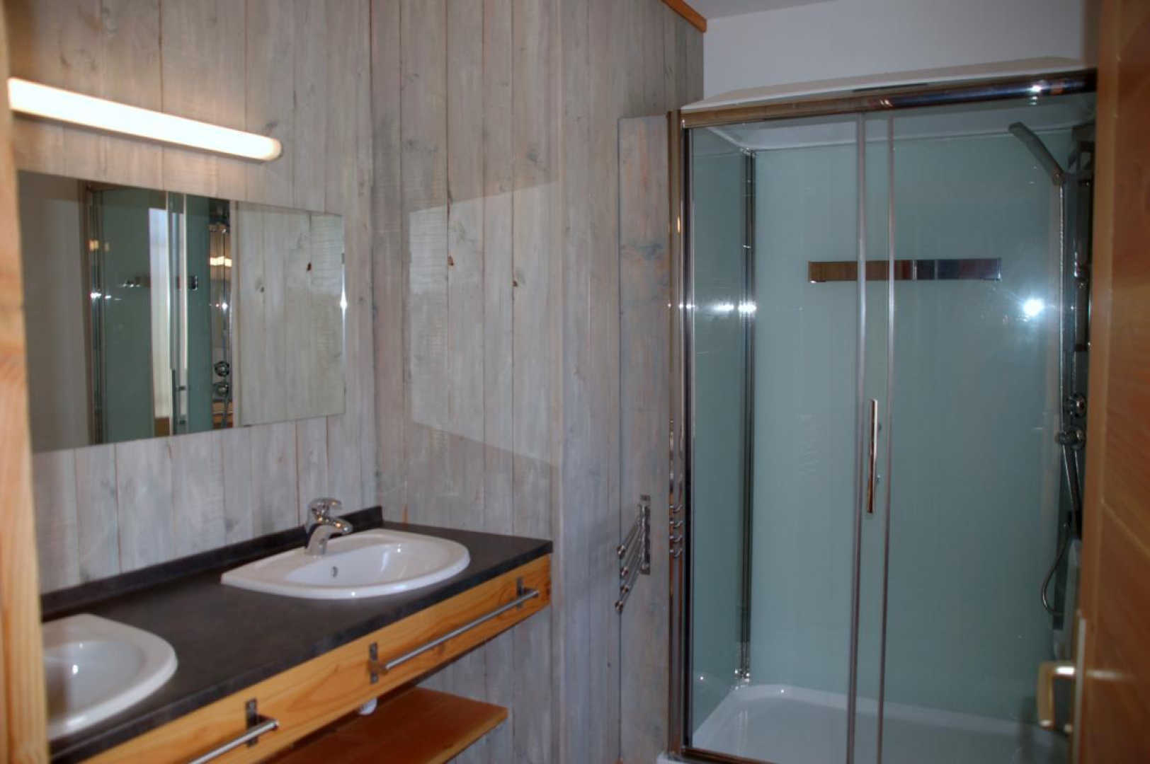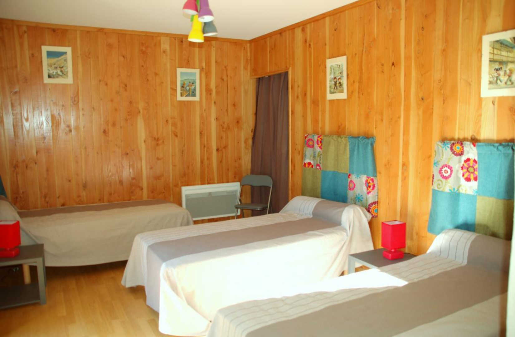 – une chambre avec trois lits en 90×190 modulables en lit double si besoin