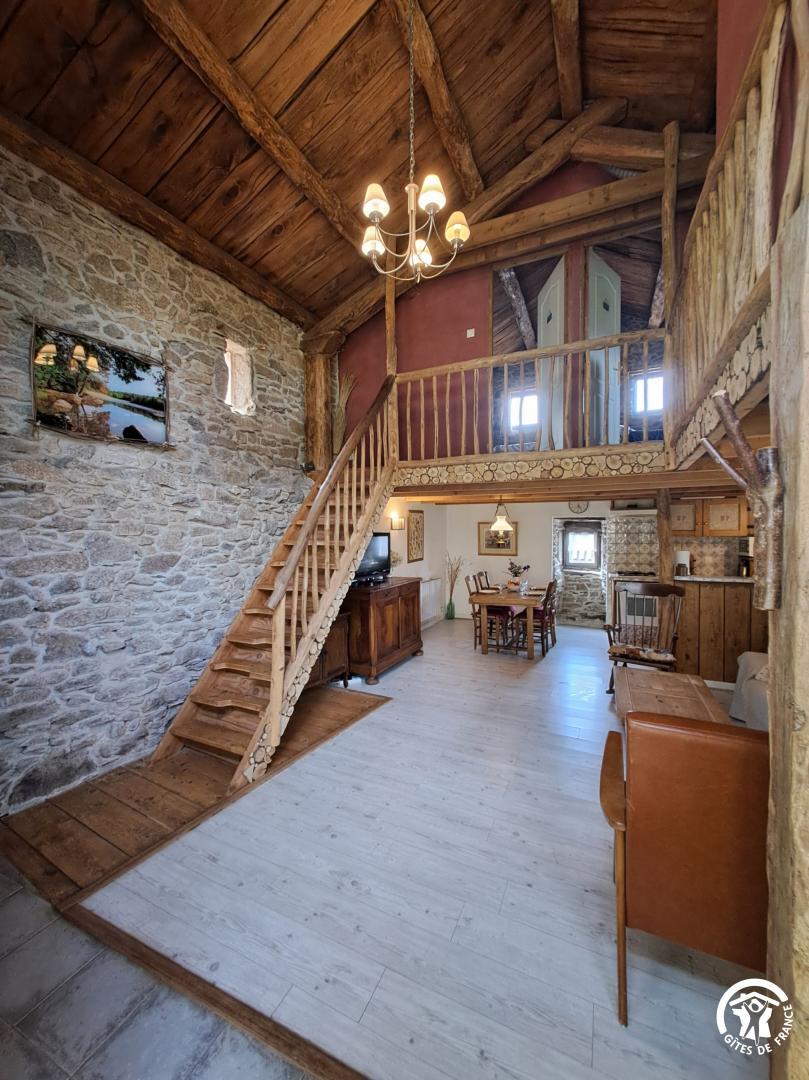 Au rez de chaussée, comprenant une cuisine entièrement équipée, ouverte sur la salle à manger et le salon. Un poêle à bois trône fièrement, apportant une atmosphère douillette dans chaque coin du gîte, complété par des radiateurs d’appoint.