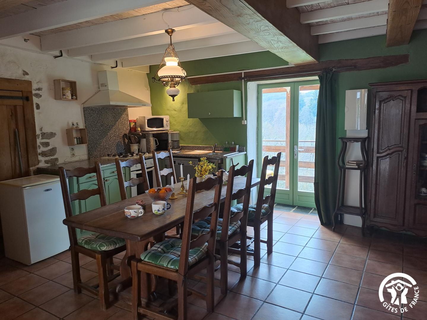 En franchissant la porte typique de cette ancienne bâtisse du Sidobre, vous serez immédiatement charmé par la grande cuisine entièrement équipée. Vous y trouverez tout ce dont vous avez besoin, y compris un lave-vaisselle et une cuisinière à bois, idéale pour préparer de délicieux plats pendant les journées fraîches. Profitez également de l’opportunité de griller des châtaignes sur les braises crépitantes !
