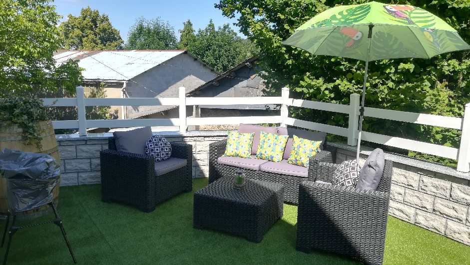 Terrace, garden furniture, barbecue, 4-seater spa