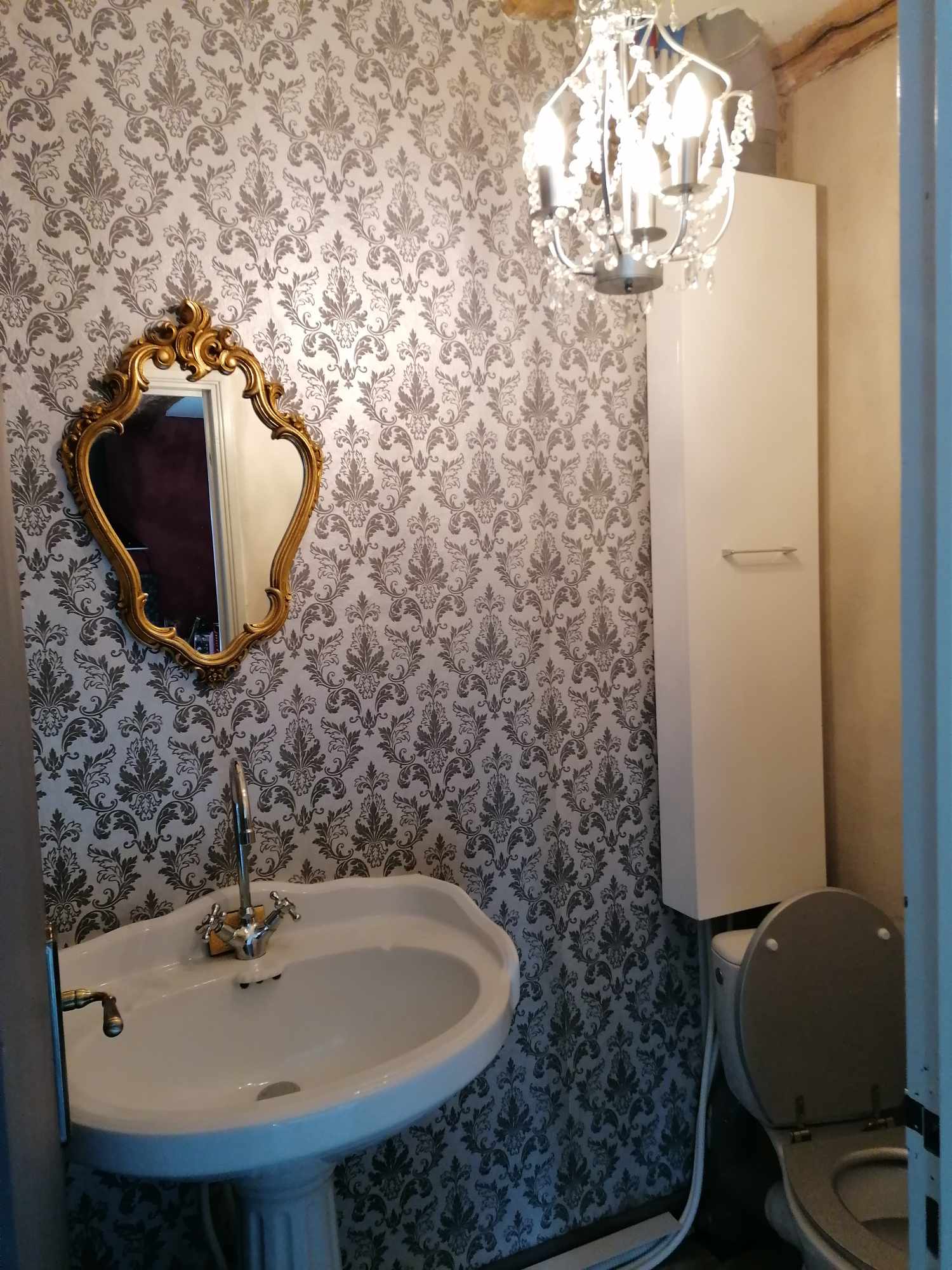 Upstairs: double bedroom (double bed 140), large landing with a 90cm bed and baby bed, shower room with shower and wc