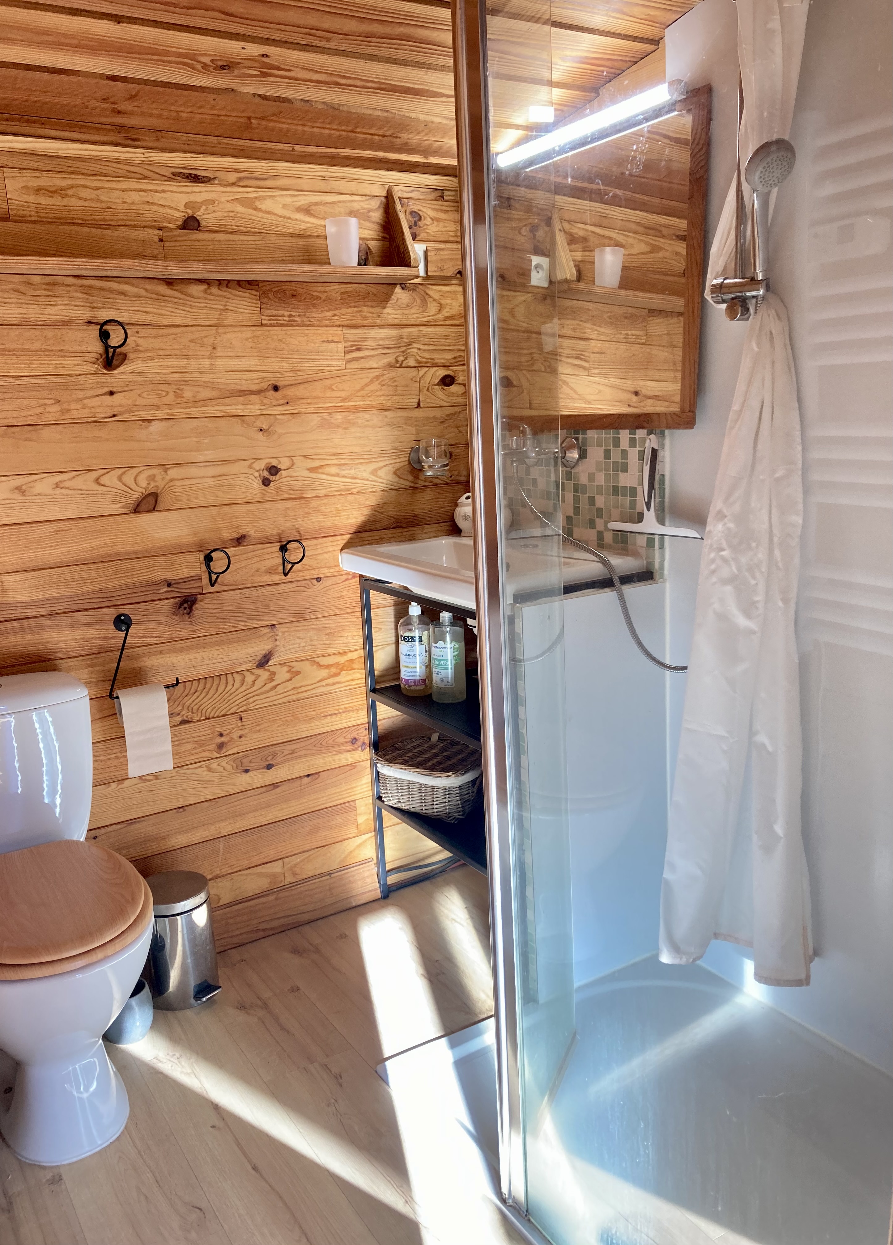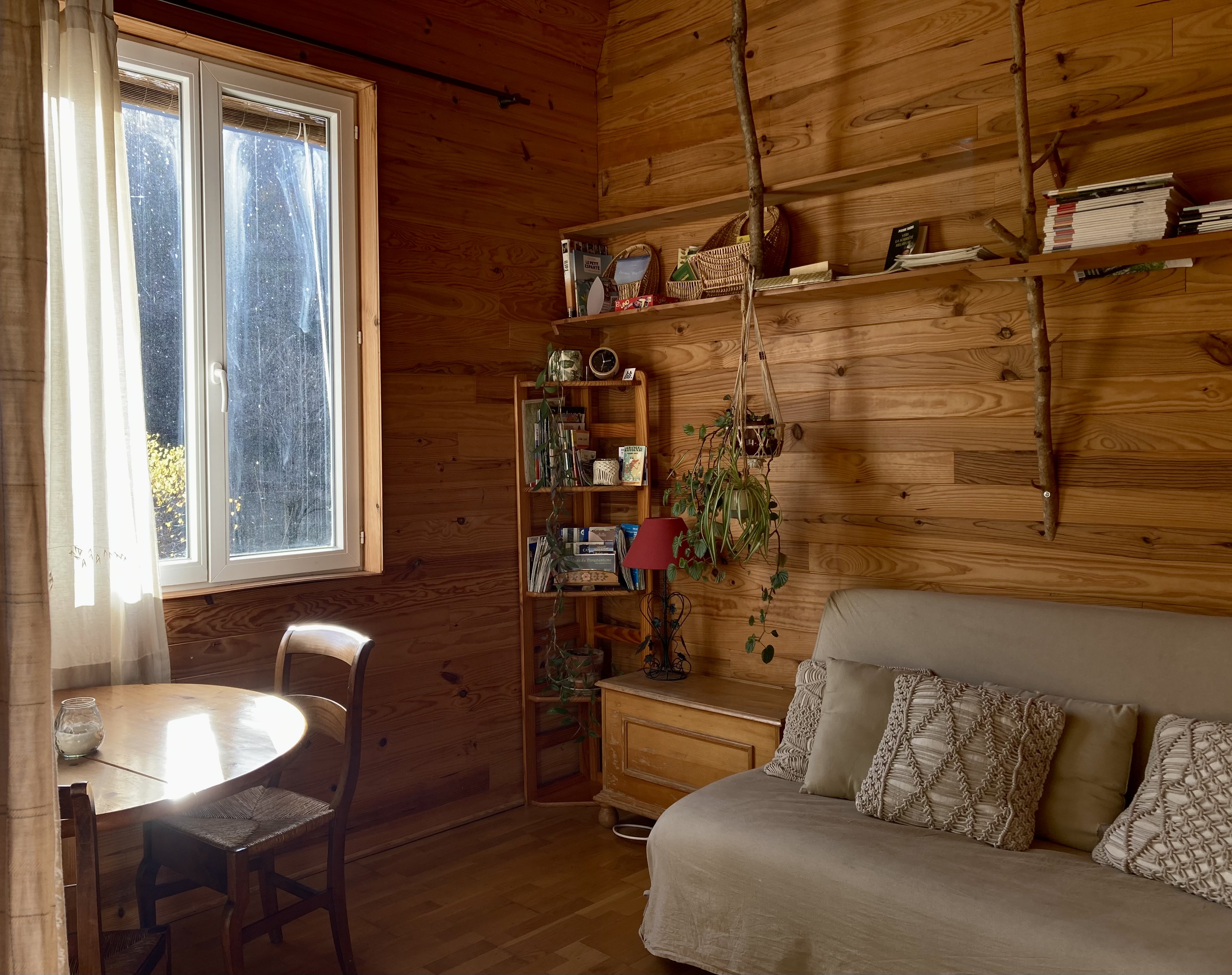 Le Petit Chalet est équipé pour recevoir 2 personnes: lit double, salon, cuisine et salle de douche. Attention : pas de fourniture de draps et de linge de toilette !