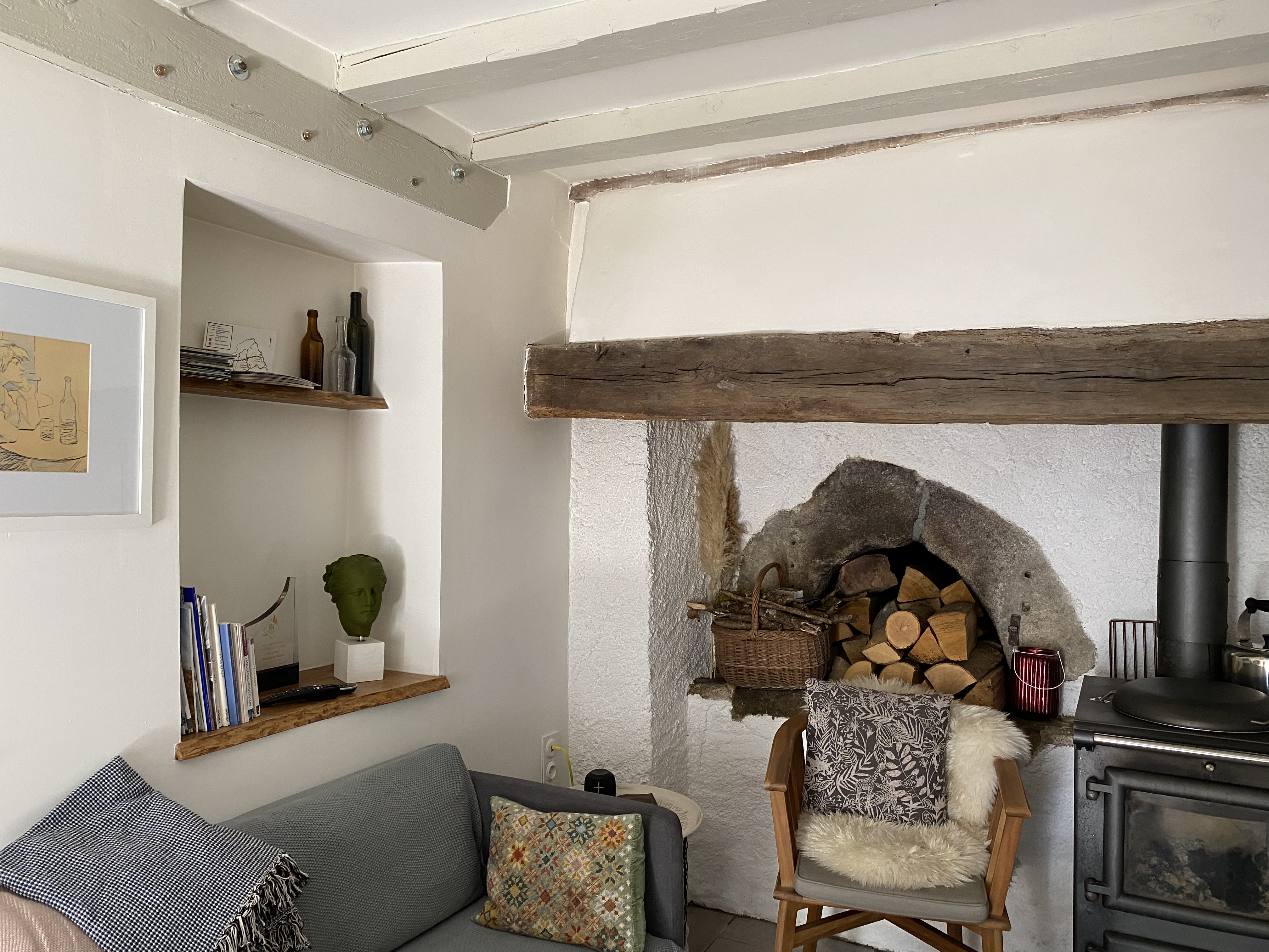 L’ancien bâtiment était un four à pain qui a été restauré avec soin et respect, en recyclant et en incorporant des matériaux récupérés dans la mesure du possible. Le lit a été fabriqué à partir de vieilles poutres et planches recyclées, de même que les rebords de fenêtre et le dessus de table.