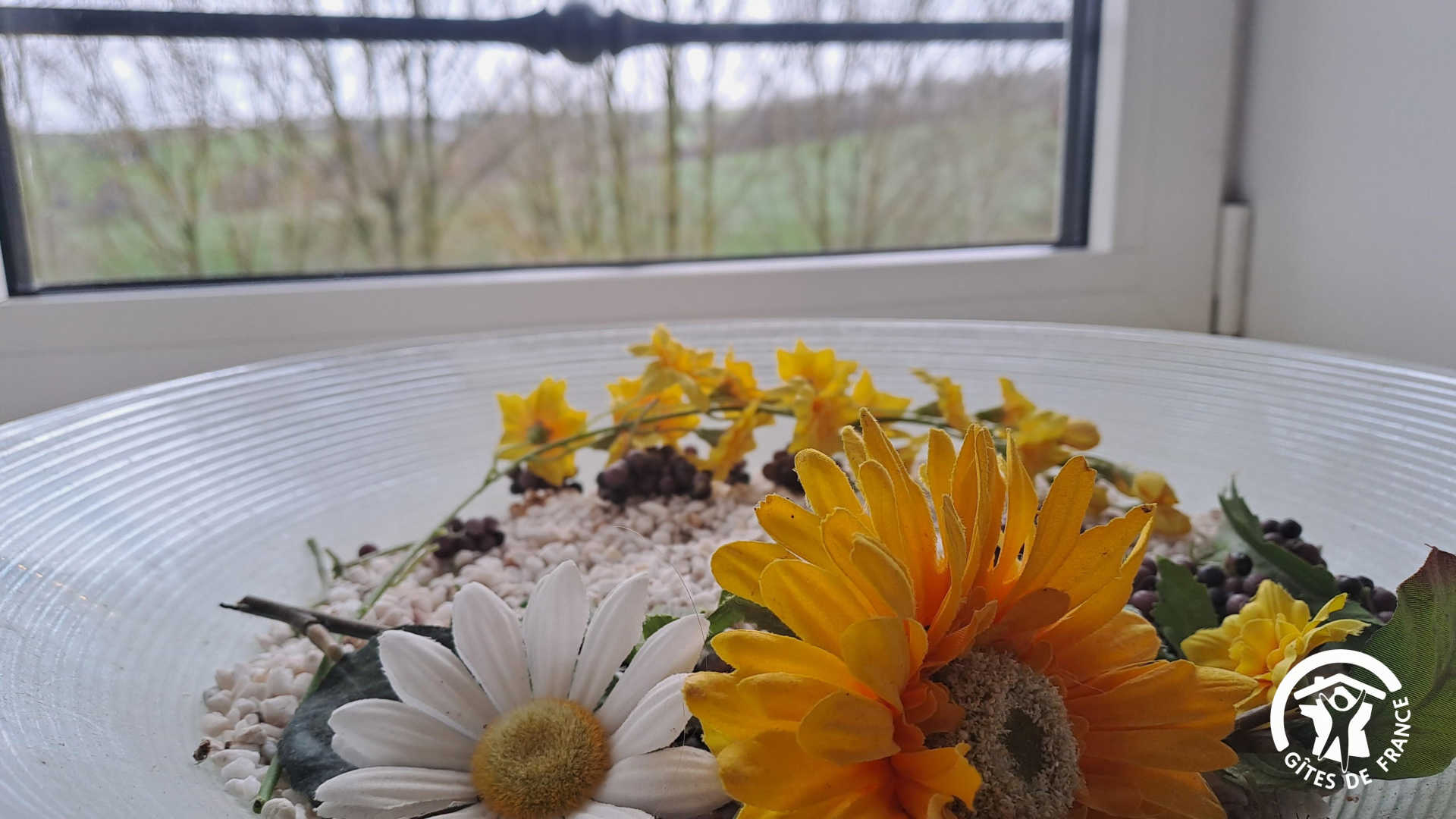 Gîte indépendant, à proximité d’une ferme et d’une résidence secondaire, tranquillité assurée ! La maison est sur une petite butte, donc vous pouvez y accéder de deux manières : soit par un escalier extérieur d’un côté de la maison, soit de plain-pied de l’autre côté en passant par le jardin et la terrasse