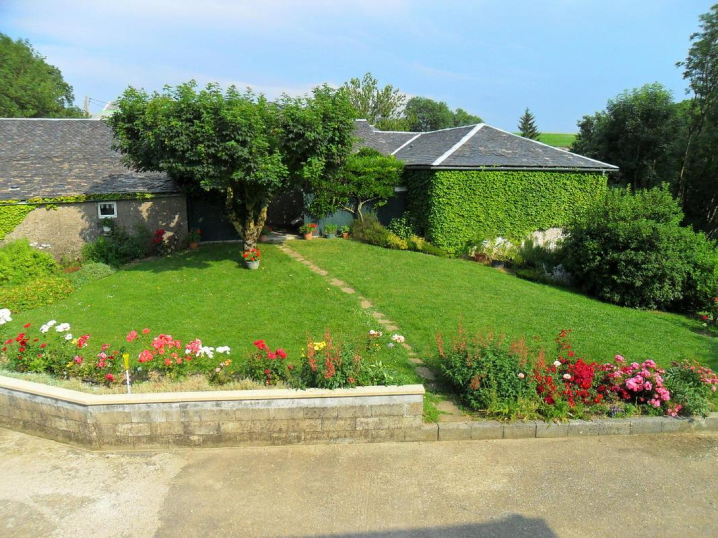 Terrasse avec barbecue devant le gîte. Grand jardin devant le gîte avec un espace jeux pour les enfants avec portique et toboggan.