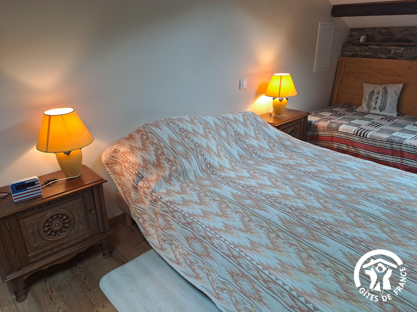 Le gîte a été aménagé dans une ancienne remise, les murs sont en pierres apparentes.