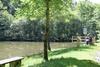 Aire avec tables en granit, en forêt, au bord du lac de la Broussonnié située à environ 900 m de la Base de Loisirs La Forêt.
