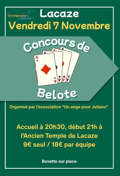Nous vous attendons nombreux pour ce concours de belote organisé par l’association « un ange pour Juliano » !! Un moment convivial pour tous les amateurs de cartes.