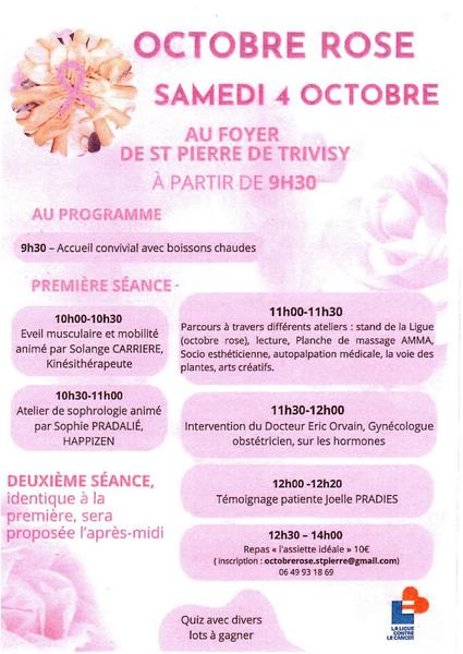 Participez aux animations organisées en soutien à la lutte contre le cancer du sein. Venez nombreux partager ces moments conviviaux et solidaires !
