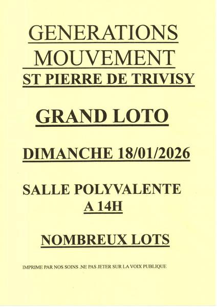 Nous vous attendons nombreux pour ce loto de l’association Générations mouvement !