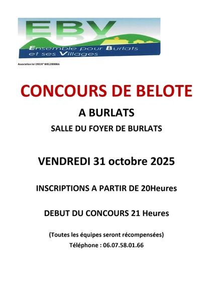 Rejoignez nous pour ce concours de belote ! Chalengez vos adversaires et montrez votre talent ! Amusement et bons moments garantis. Inscriptions à partir de 20 heures. Toutes les équipes seront récompensées.