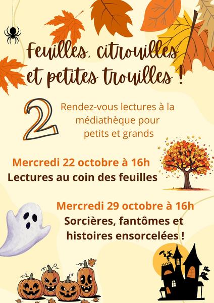 Venez nombreux pour nos rendez-vous lectures spéciaux Automne et Halloween à la médiathèque de Brassac ! Des moments magiques et ensorcelés pour les petits et les grands.