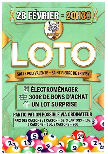 Venez participer au grand loto du club de rugby de Saint Pierre de Trivisy !